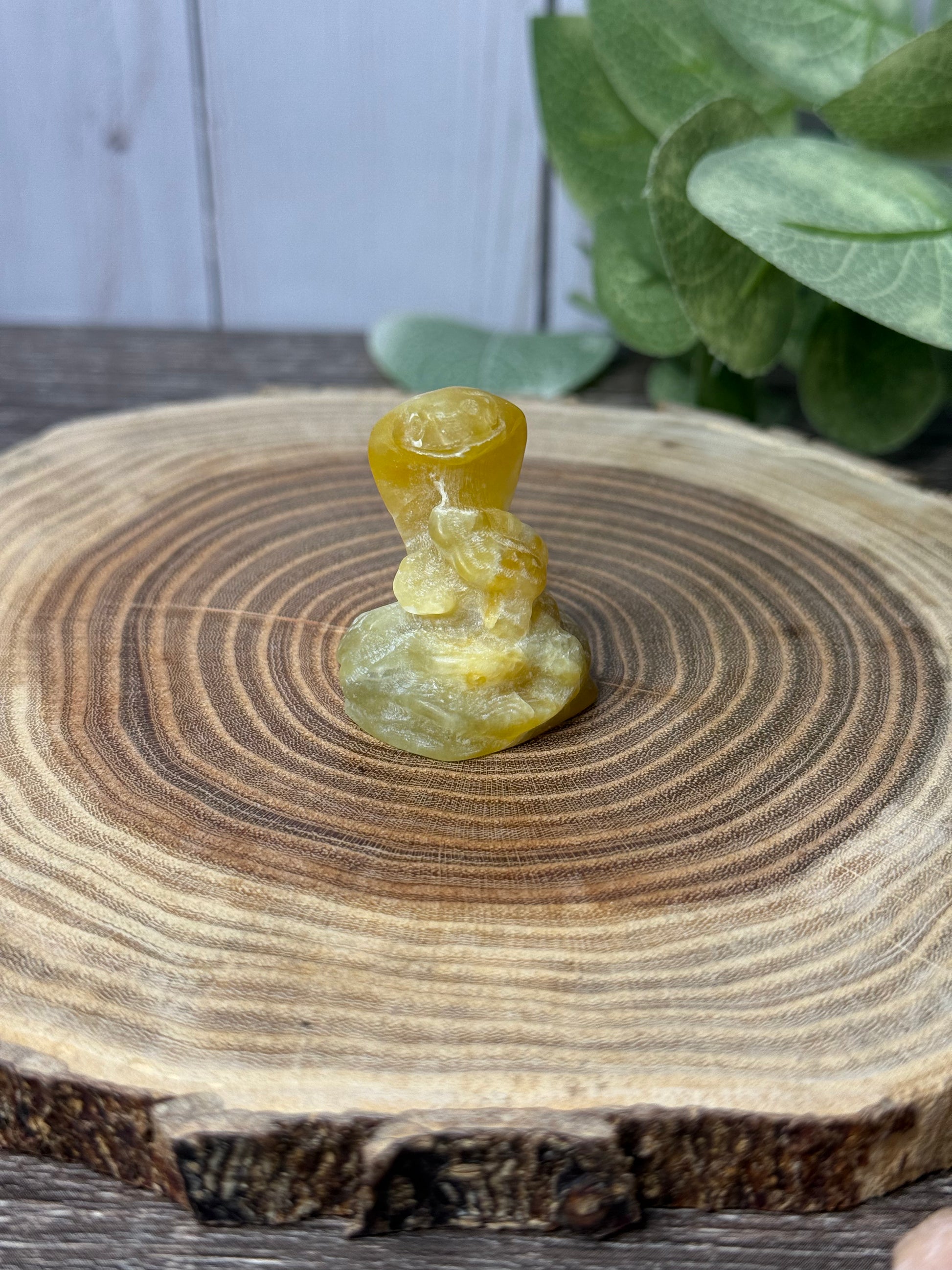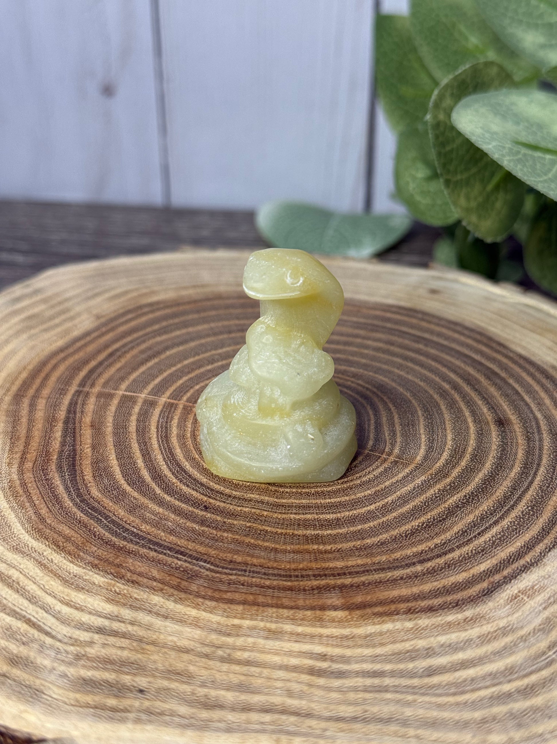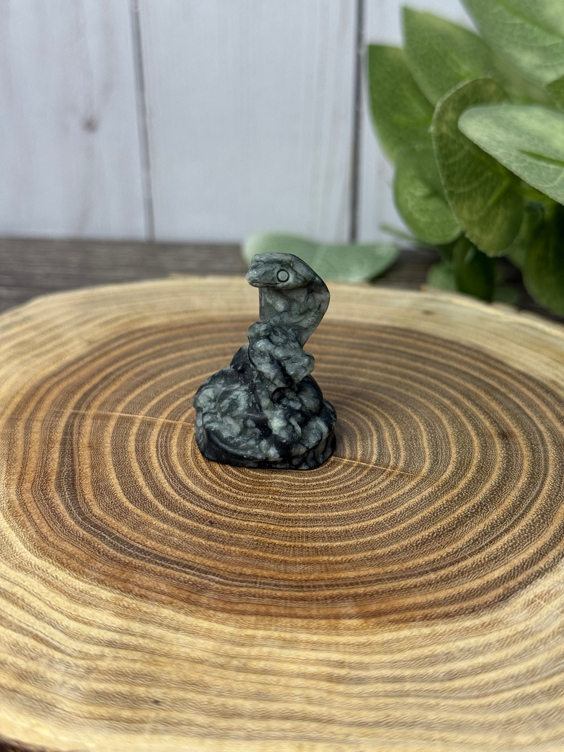 An assortment of cobra carvings that are made of different stones. What one is calling to you?