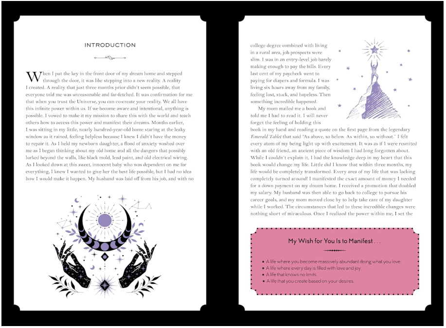 Included inside the back cover is a beautifully illustrated 18 x 24–inch frameable poster with affirmations and tips on how to manifest your dreams most effectively.
