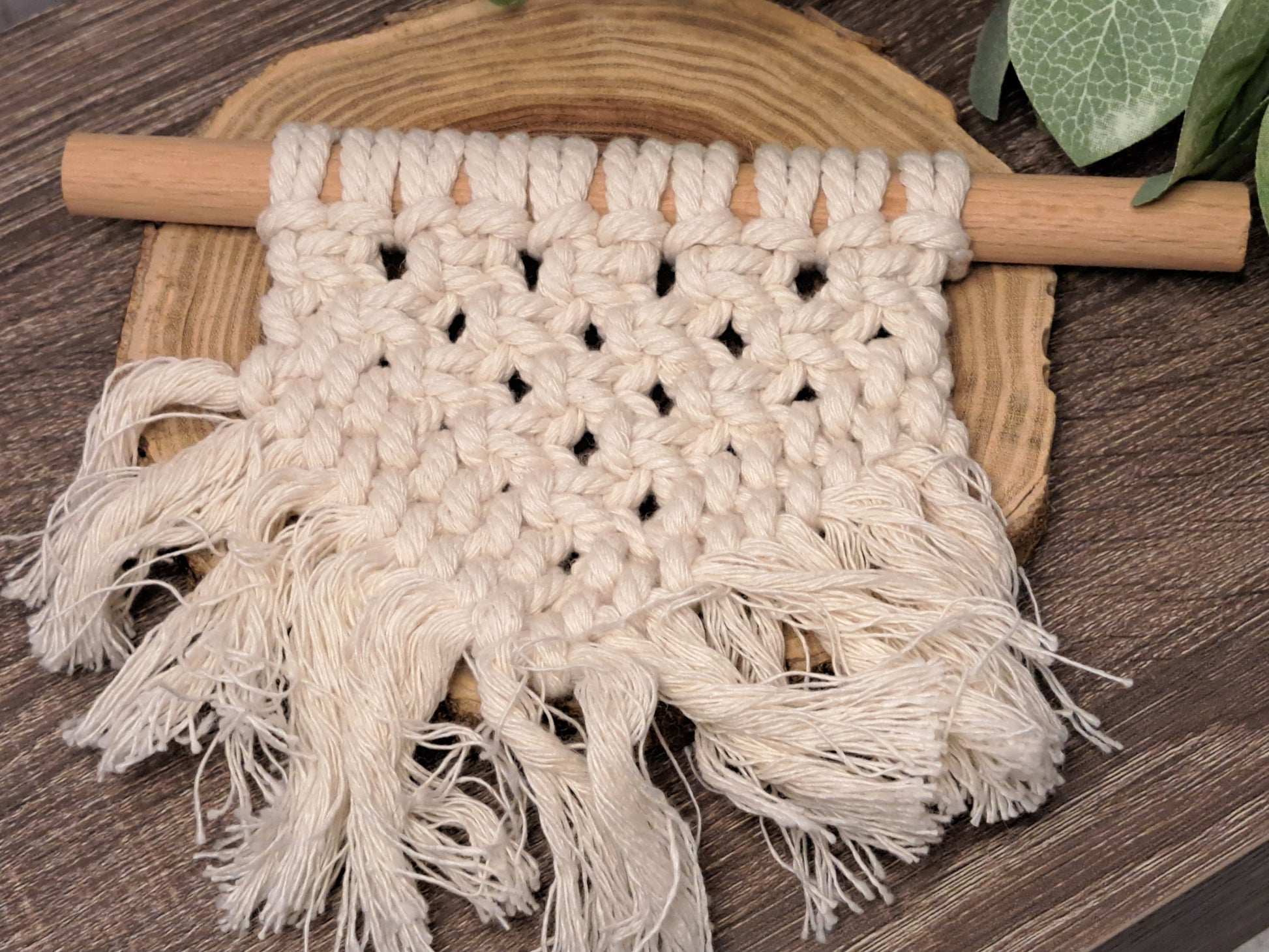 Ad a touch of style with this macrame wall hanging. It's perfect for a bedroom, living room, entry way, work space, as a gift and so much more. This is a great alternative to a picture or poster. Comes with the string for easy hanging. Bring calm and peaceful mood to your space. Lightweight, easy to hang & pack. Full of charm and whimsy being the perfect size to hang anywhere. Other styles available in other listings.