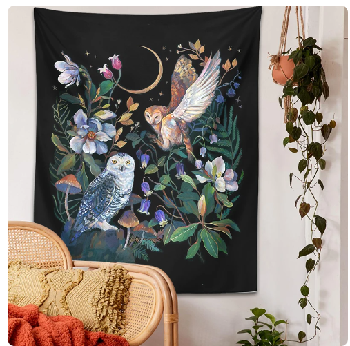 Owls Night Garden Tapestry