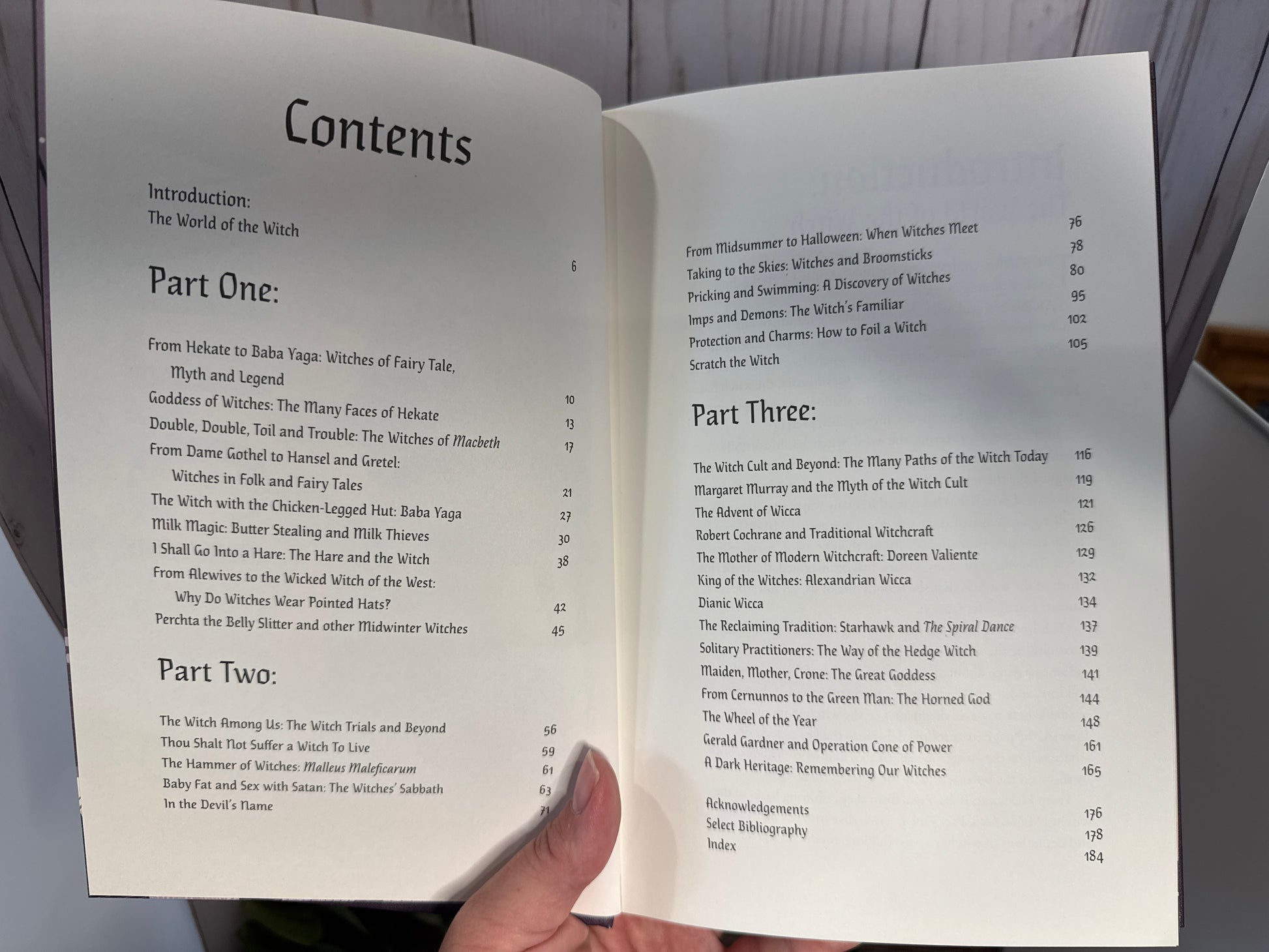 The book is split into three chapters: Witches of Myth and Legend, Witch Trials and Witch Beliefs, and The Wheel of the Year.