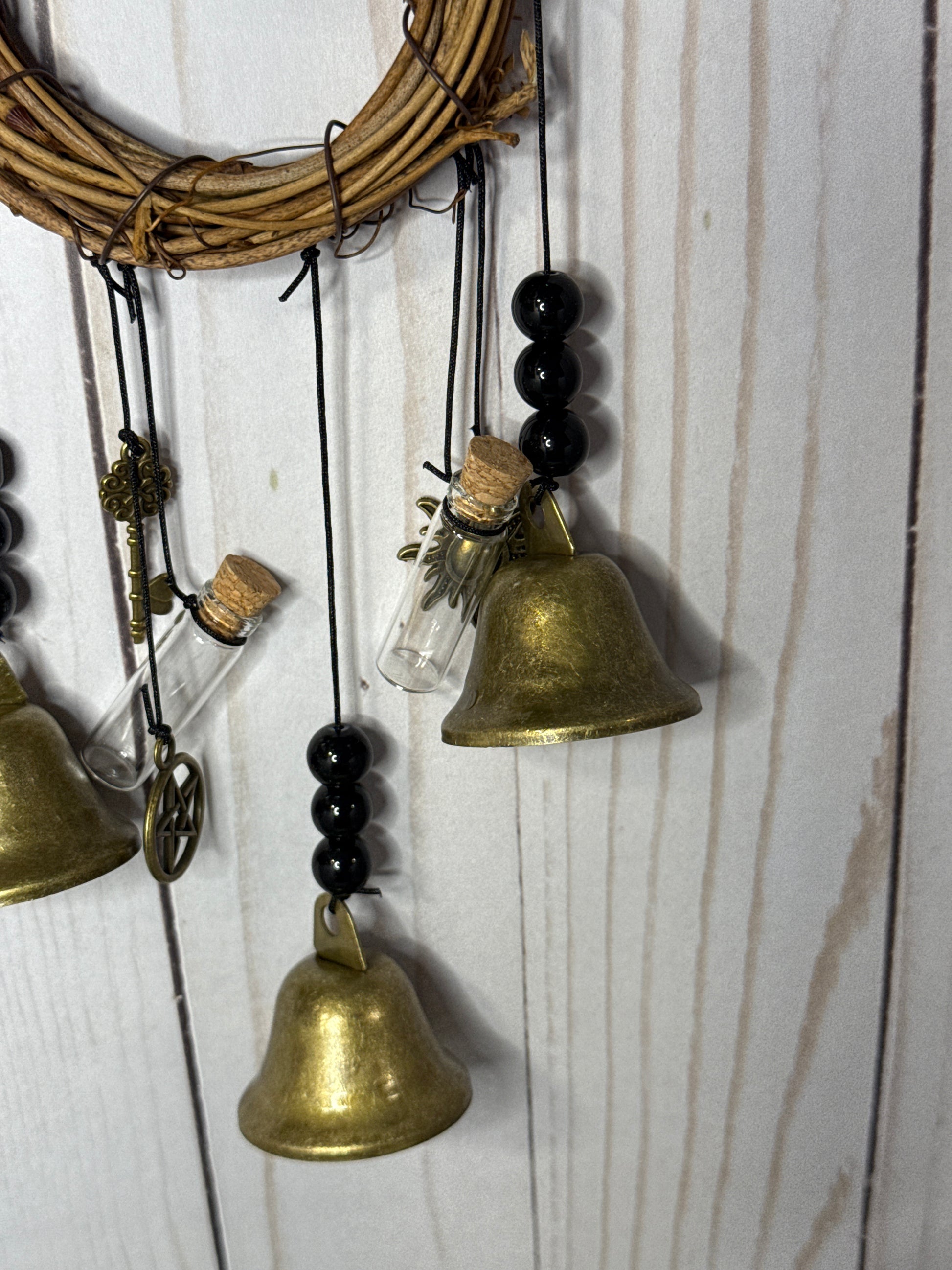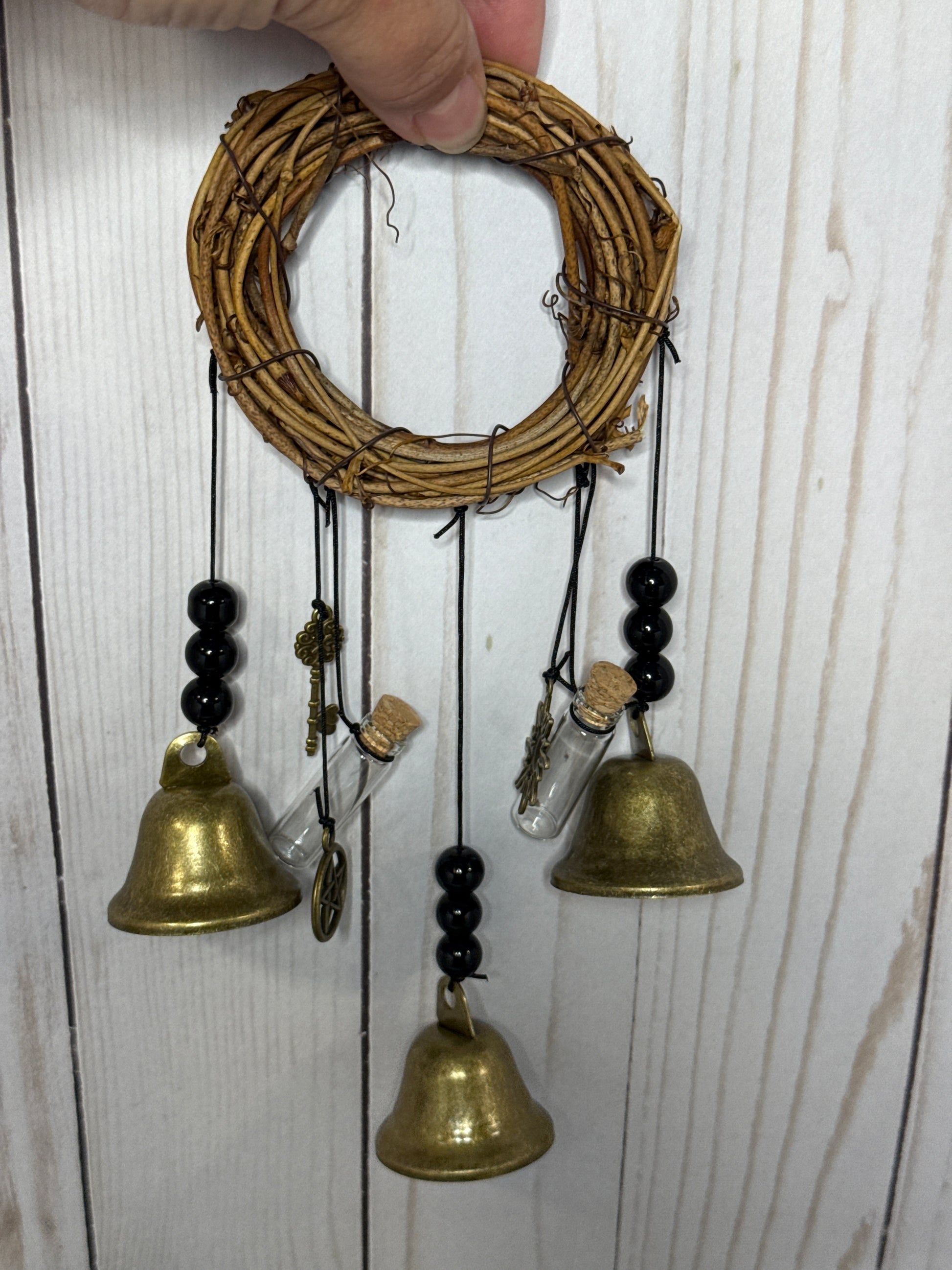 Witch Bells for Home Protection, 3 Bells, charms and 2 crystal bottles