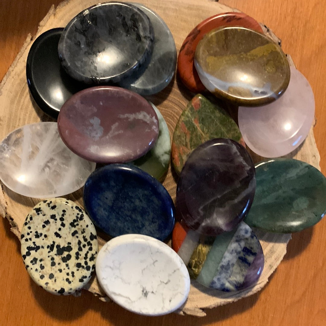 A wide assortment of different worry stones that you can carry with you with the added bonus of the crystals properties. What ones are calling to you?